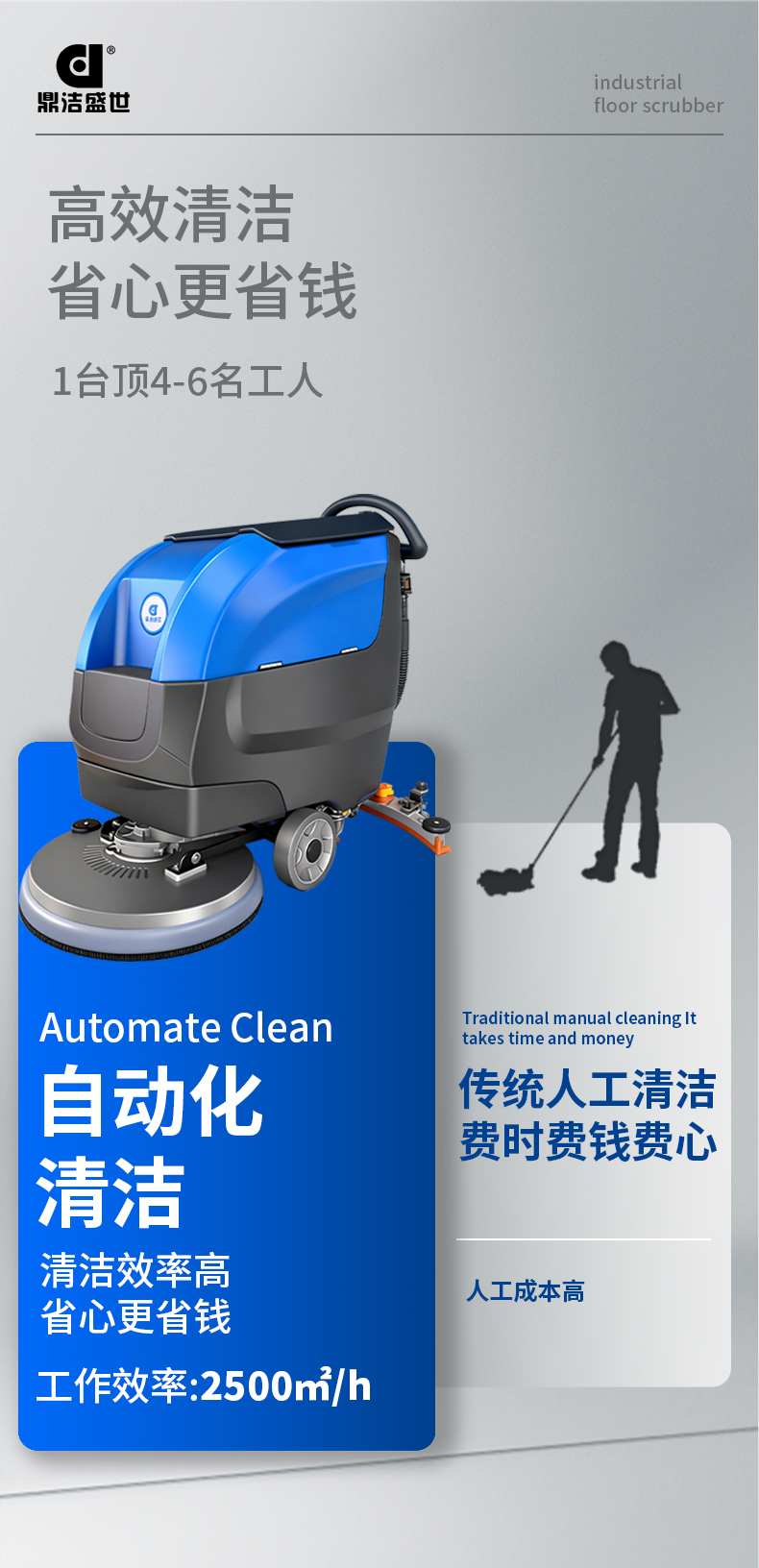 鼎洁盛世DJ530S手推式全自动自走型工业洗地机