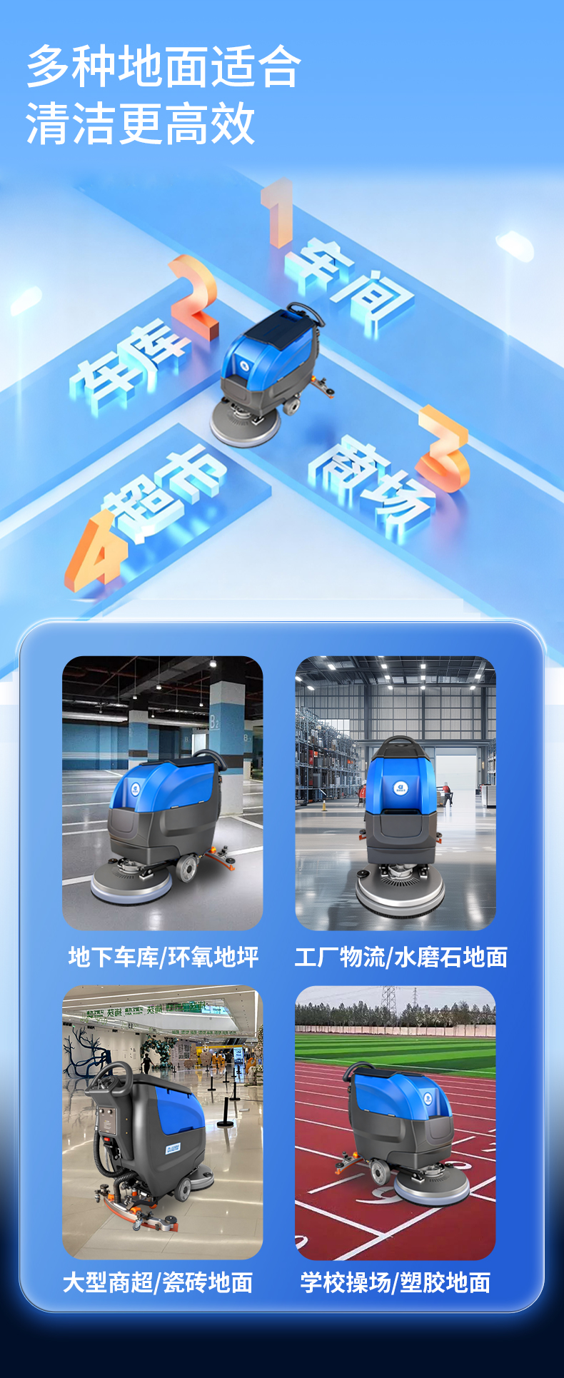 是一款适用于平滑瓷砖、镜面石料、pvc、环氧、金刚砂、磨光水泥等硬质表面的清洁手推式洗地机。更是大超市、车间、展馆、体育场馆、机场、车站、码头等场所保洁的共同选择。