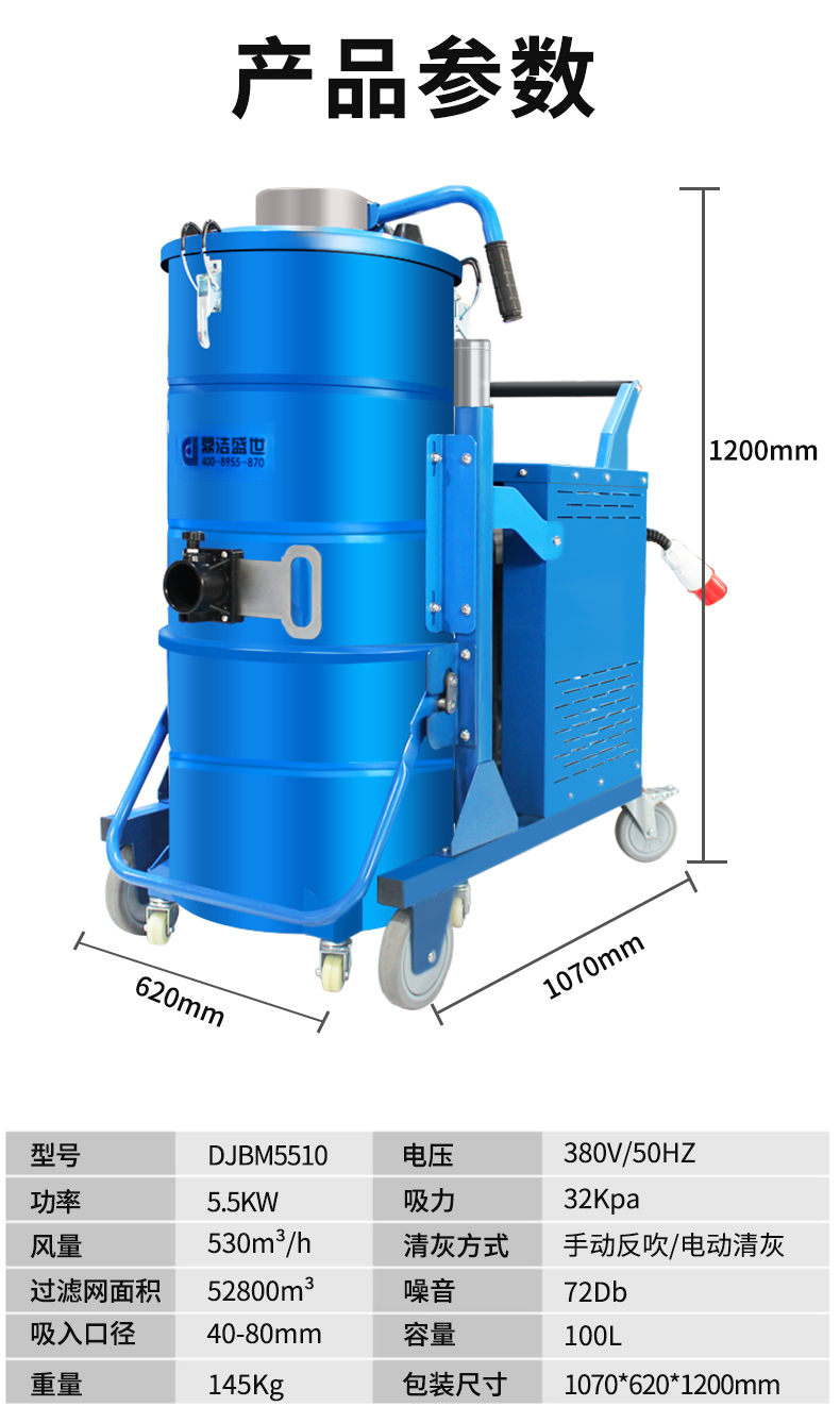 鼎洁盛世DJBM5510工业吸尘器手动反吹